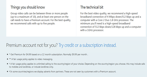 I took screenshots of one Skype offer today, which still seems to have the allegedly problematic features—the “fair usage policy” doesn’t even have a link, which is not good. Query also whether “things you should know” just above the bottom interferes with directing consumers’ attention to the important caveat about “unlimited”—to wit, that it’s actually limited.