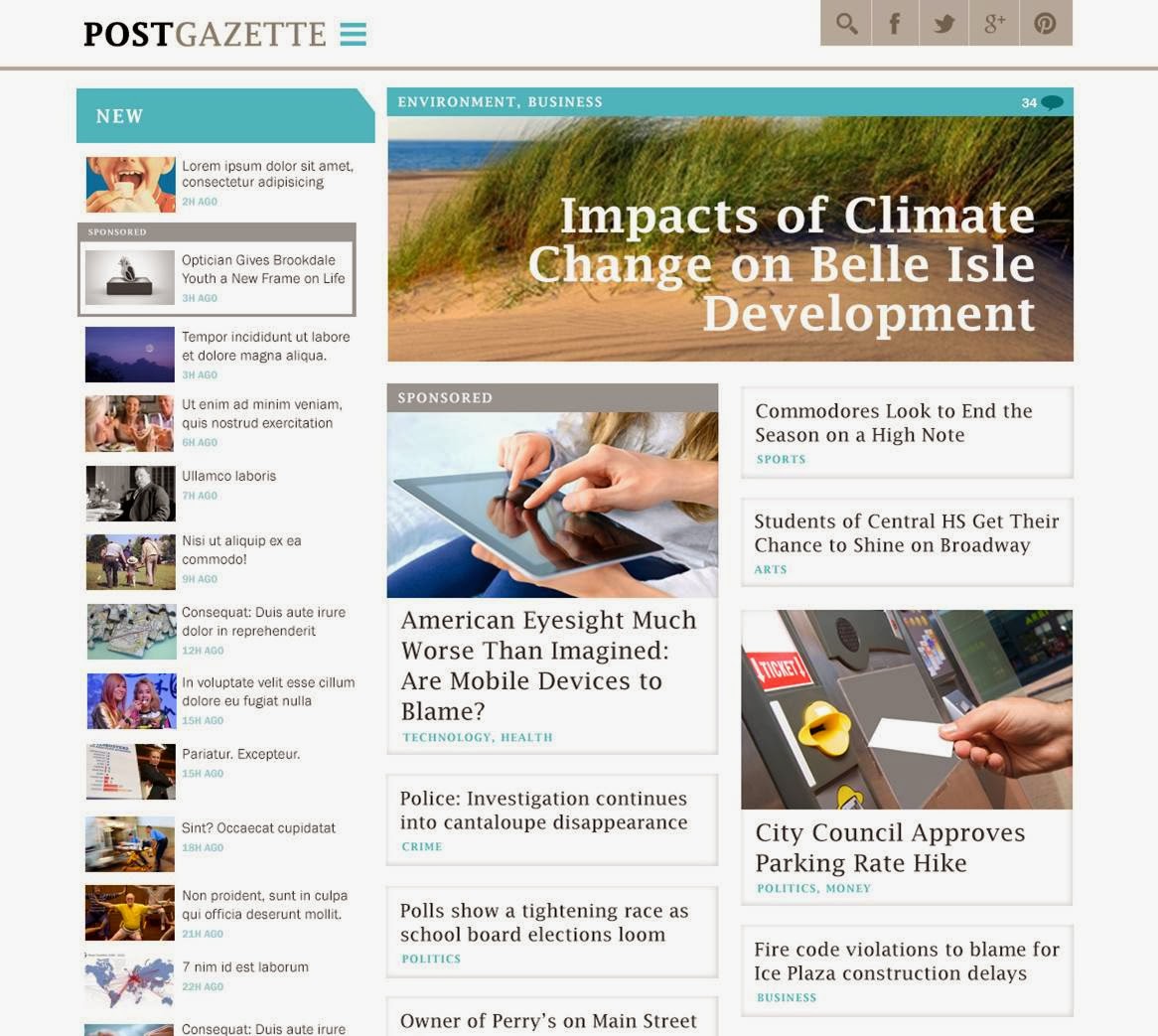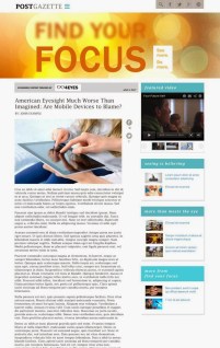 Examples of native ads: “sponsored” story, labeled as such in gray at the top of the headline, in the middle of news stories; story is that American eyesight is worse than you think; is it attributable to mobile devices? Advertiser is FourEyes, eyewear provider.