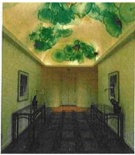 During a field trip to the Hughes residence with students from a class she was teaching at the University of Wisconsin, Sager took a photo of her students looking at the vault ceiling where the artwork was installed.