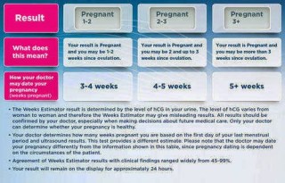 This test cannot be used to determine the duration of pregnancy or to monitor the progression of pregnancy. Your doctor determines how many weeks pregnant you are based on the first day of your last menstrual period and ultrasound results. This test provides a different estimate that cannot be substituted for a doctor’s determination of gestational age. Only your doctor can provide a reliable estimate of gestational age and only your doctor can monitor pregnancy progression. You should seek qualified prenatal care if you suspect you are pregnant.