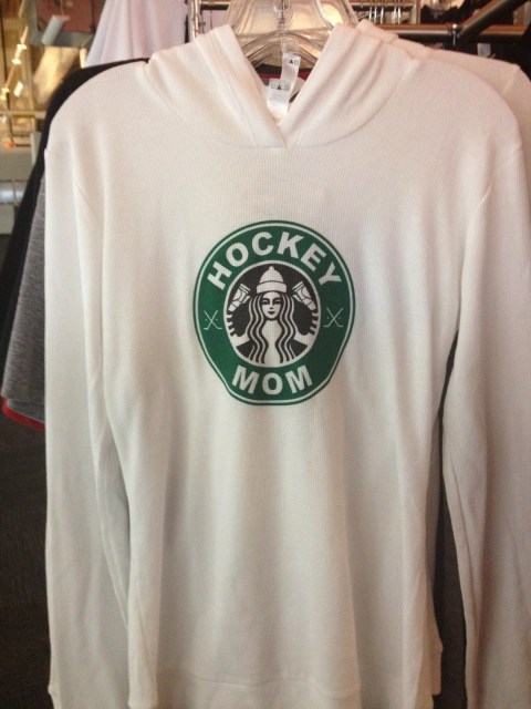 How about this “Hockey Mom” shirt in Starbucks style?