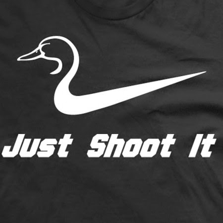| Just Shoot It shirt with Nike logo curving into duck head |