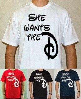 | “She wants the D” T-shirts with Disney D |