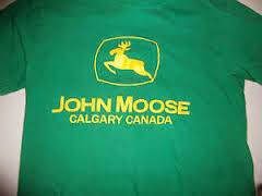 | John Moose, Calgary Canada, with moose in John Deere pose |