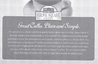 | “Great Coffee. Plain and Simple.” with neighborhood coffee shop narrative |