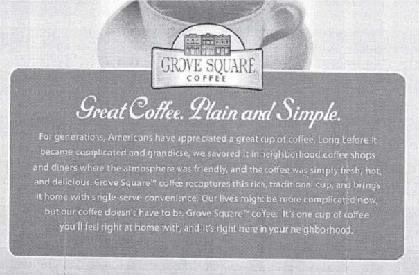 Sturm’s own marketing studies indicated that users consider coffee brewed in Keurig machines to be high-quality, contributing to the high price of both the machine and the K-Cups. Until 2012, Keurig held a patent over the K-Cup filter technology, so Sturm turned to a substitute in 2010 that used the external K–Cup design “but whose innards were entirely different.” Among other things, it didn’t have a filter. Sturm, selling as Grove Square Coffee (GSC), intended to gain a first-mover advantage in the post-patent landscape.
