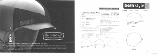Bern referred to the patent in marketing materials and on its website and at trade shows many times. Catalogs included logos that stated “the original” above text that stated “visor shell patent # US D572,865S,” and one also included an actual excerpt from the patent. There were other claims, such as that Bern’s “patented hard visor shell shape has been imitated but never replicated. Almost every brand in the market now has a brim, but your customer wants the original.” Trade-show banners also included “the original” with the patent number below it. Bern’s strategy, as indicated by internal documents, included allegations that competitors have “knocked off” Bern and that retailers should avoid stocking knock-off brands.