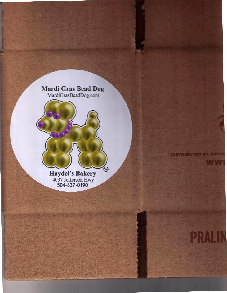 | Initial Haydel specimen of use (note that carton apparently contains or contained “pralines”) |