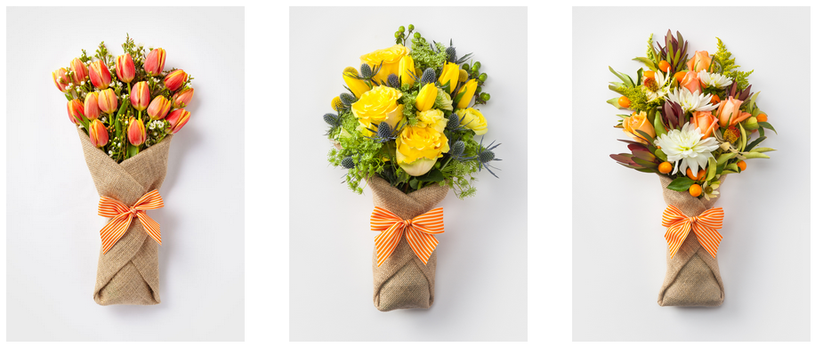 Bloom That is an online flower delivery service that delivers bouquets of flowers in 90 minutes or less. Bloom That launched in San Francisco and set up shop within one mile of Farmgirl’s headquarters and in Farmgirl’s primary sales territory. It initially sold bouquets that had been wrapped in recycled burlap donated by local coffee roasters, then began wrapping its bouquets in new, rather than recycled, burlap. Bloom That also claims to source locally-grown flowers for use in its bouquets and delivers its bouquets via bicycle courier. It first wraps the flowers with a material designed to hydrate the flowers during delivery, than an outer layer of burlap plus its own branding of an orange and white striped ribbon and a paper “luggage” tag fastened with a wooden clothes pin. Bloom that claimed to use burlap because the “hydration pack” was neither aesthetically pleasing nor was it sufficient to hold the flowers together.