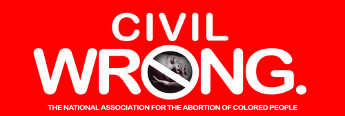 | Bumper sticker style “Civil Wrong” with “National Association for the Abortion of Colored People” label |