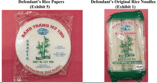 The parties began doing business together in 2004, when Thuan Phong agreed to make rice paper for Anhing’s White Elephant Brand private label. In 2010, Anhing discovered Thuan Phong’s US sales of rice paper with BÁNH TRÁNG MỸ THO on the label, which Anhing considered confusingly similar to its BÁNH TRÁNG MỸ-THO rice paper, and Anhing had the same objections to Thuan Phong’s “BÁNH PHỞ MỸ THO” rice noodles, given Anhing’s “BÁNH PHỞ MỸ-THO” rice noodles. In response to Anhing’s requests, Thuan Phong maintained that the terms weren’t used as marks, but rather as information about the geographic source of the products. However, Thuan Phong agreed to discontinue these particular phrases and to sell under “BÁNH PHỞ SẢN XUẤT TẠI THᾺNH PHỞ MỸ THO” and “HỬ TIỀU SẢN XUẤT TẠI THᾺNH PHỞ MỸ THO.” These phrases state more clearly in Vietnamese that their rice noodles are produced in the city of Mỹ Tho. Anhing wasn’t satisfied, because the geographic designations would still appear at the top of Defendant’s packaging, with the words “MỸ THO” in bold red lettering and in the same font size as the rest of the words on the packaging. Thuan Phong refused to move the words “MỸ THO” to the bottom of its packaging, and it didn’t change its rice paper packaging or add similar prepositional phrases.