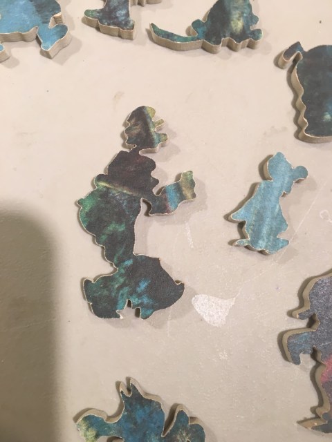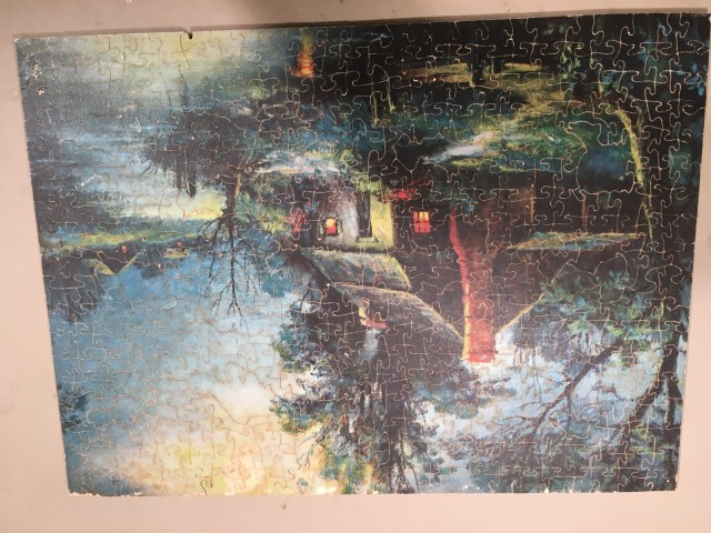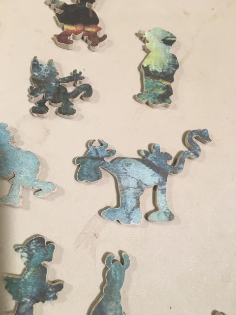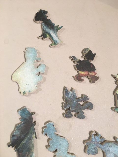This delightful vintage puzzle contains whimsies in the shape of once popular cartoon characters–some I can ID, like Popeye, while others are more elusive. Suggestions welcome.