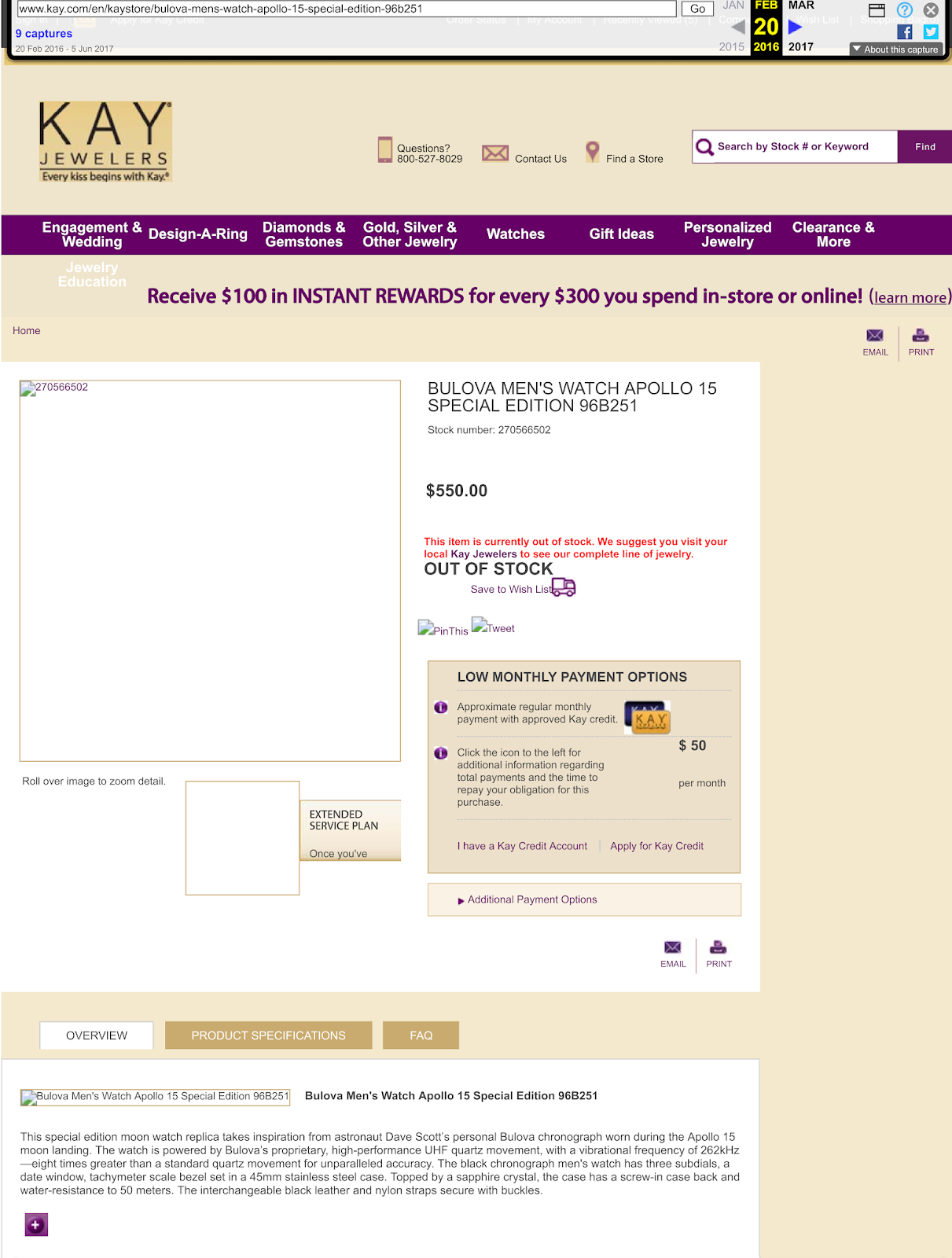 statement repeated frequently in Bulova and Kay’s advertising: “After Apollo