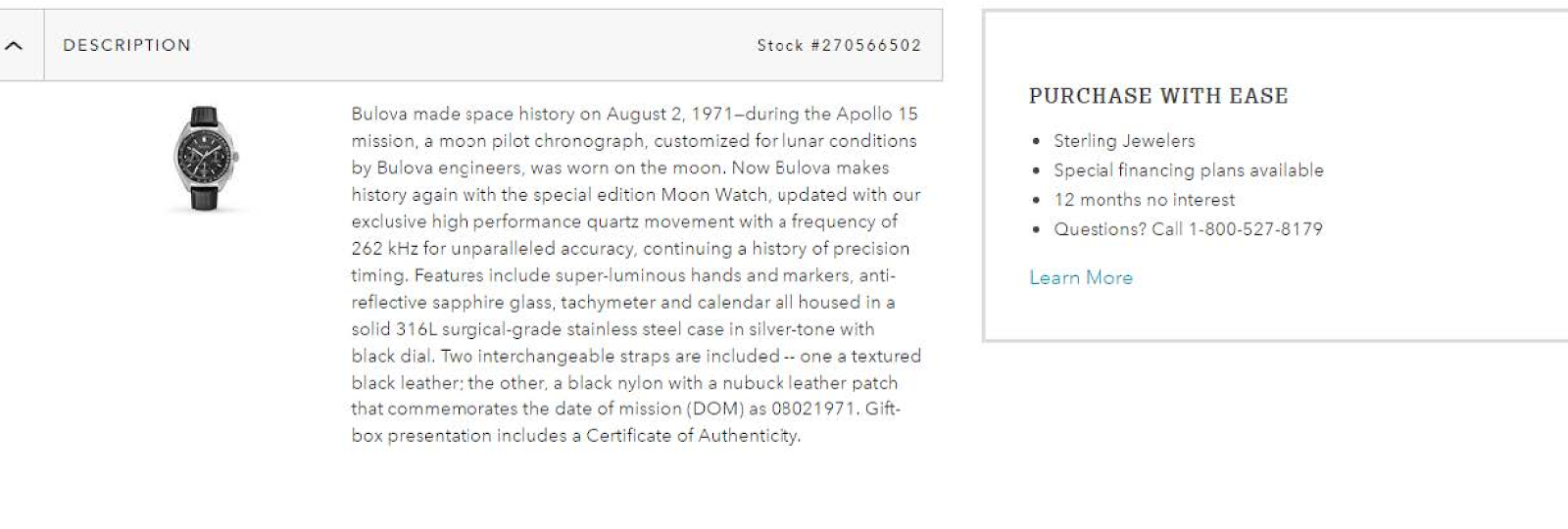 materials, including the descriptions on Bulova’s and Kay’s websites, the