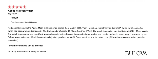 While Bulova may legally showcase its legitimate connection to Apollo 15, the