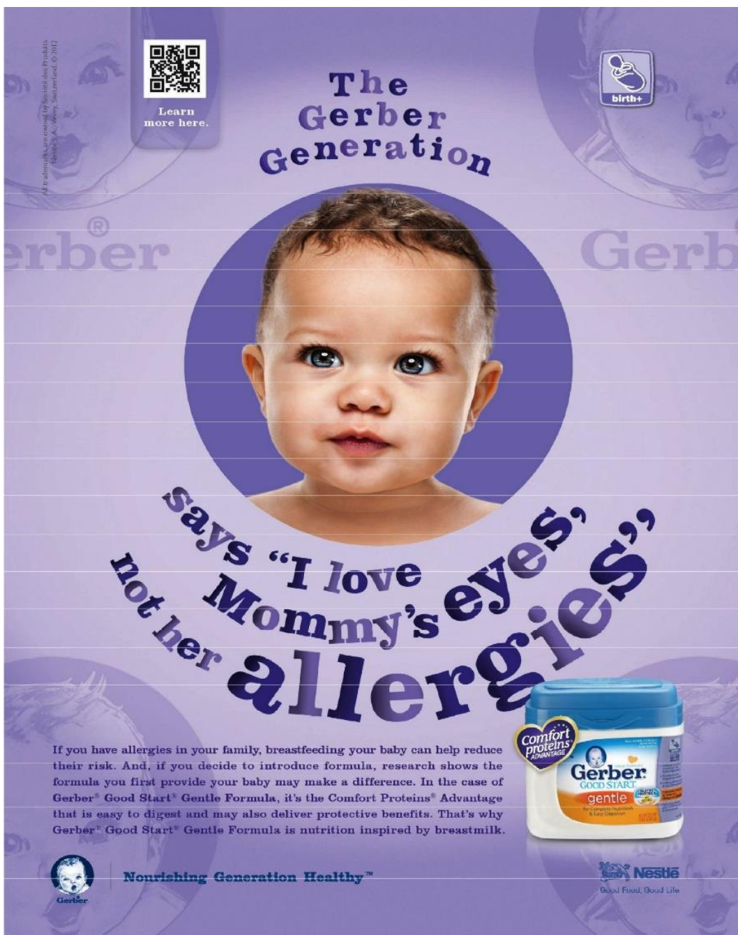 infant formula to a reduced risk of food allergy.” Gerber tried again in 2009