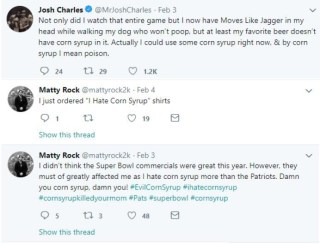 touted “100% less corn syrup” than the two competitors. An AB Twitter account posted