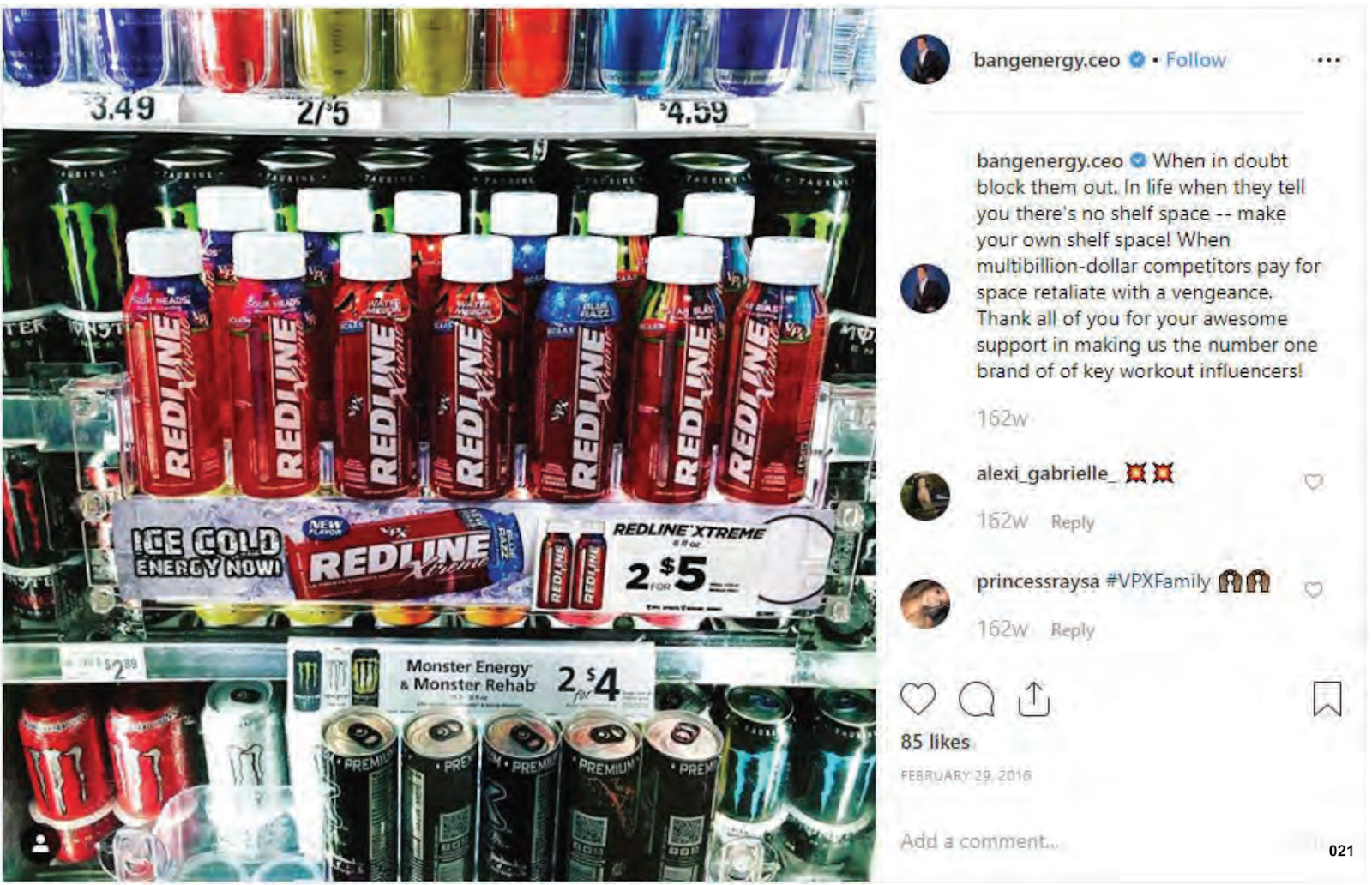 has been “fueled by VPX’s theft of Monster’s shelf and cooler space,” Monster