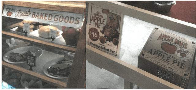 in 2018, it sold baked goods that used the Apple Haus name and red apple design: