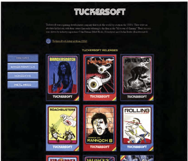 Tuckersoft, the fictional videogame company where the main character developed