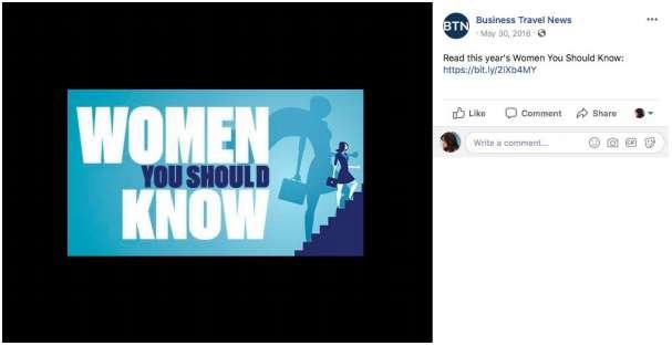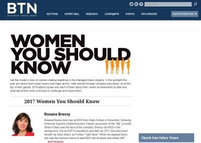 “BUSINESS TRAVEL NEWS’ 2019 WOMEN YOU SHOULD KNOW,” suggesting an intent to identify BTN as the source.