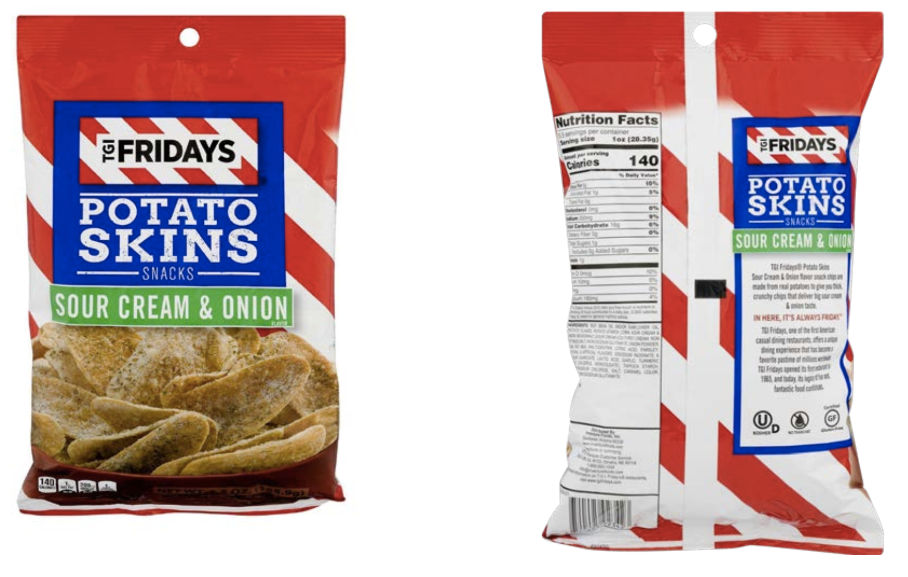 bag of snack chips labeled “TGI Fridays Potato Skins Snacks,” mistakenly believing