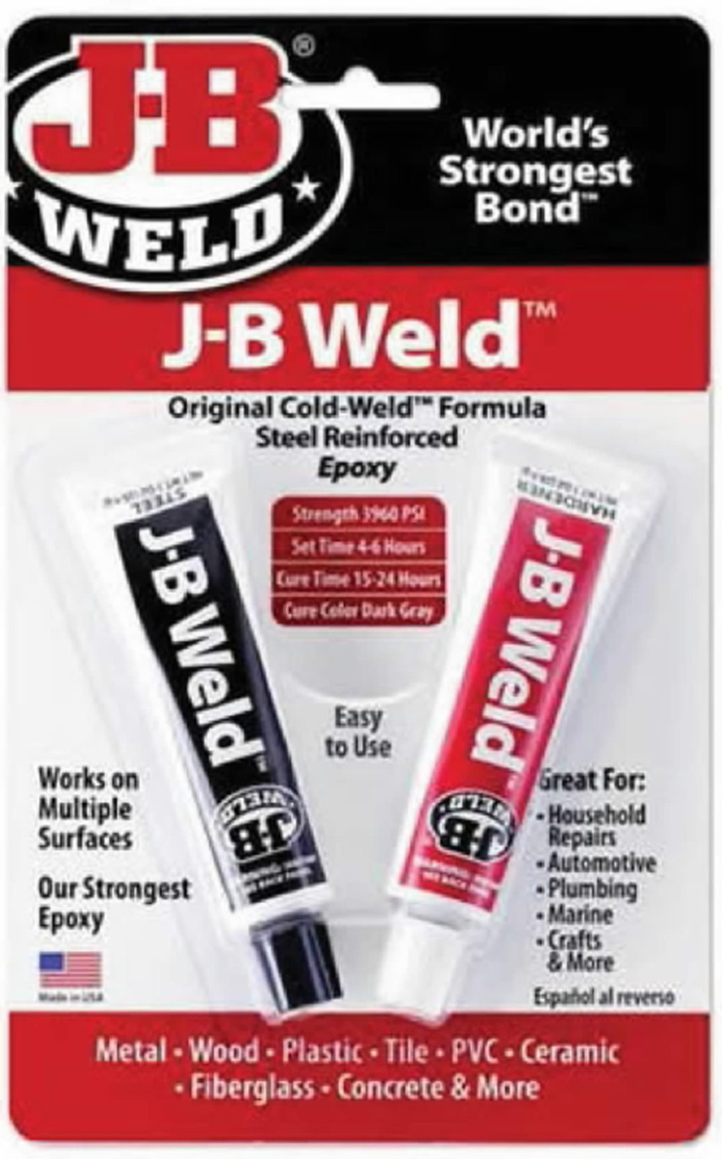 in the adhesive market. J-B Weld makes a two-part epoxy adhesive. “J-B Weld