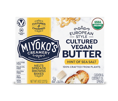 | front of European Style Cultured Vegan Butter from Miyoko’s Creamery |