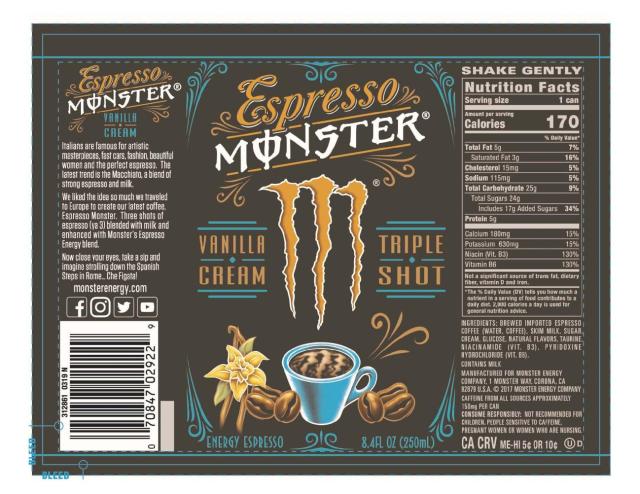 the Espresso Monster Vanilla Cream Triple Shot says “Vanilla Cream,” “Triple